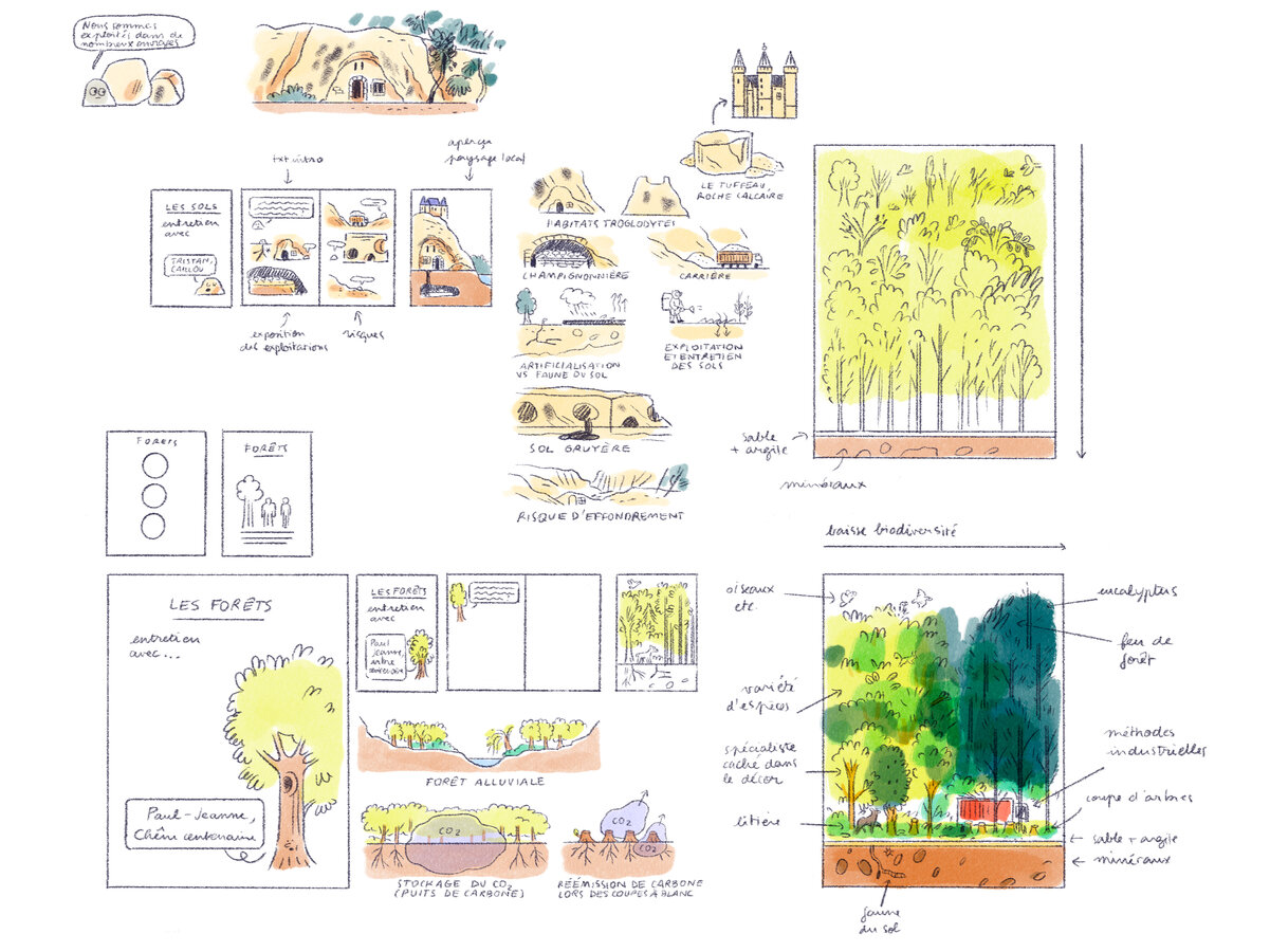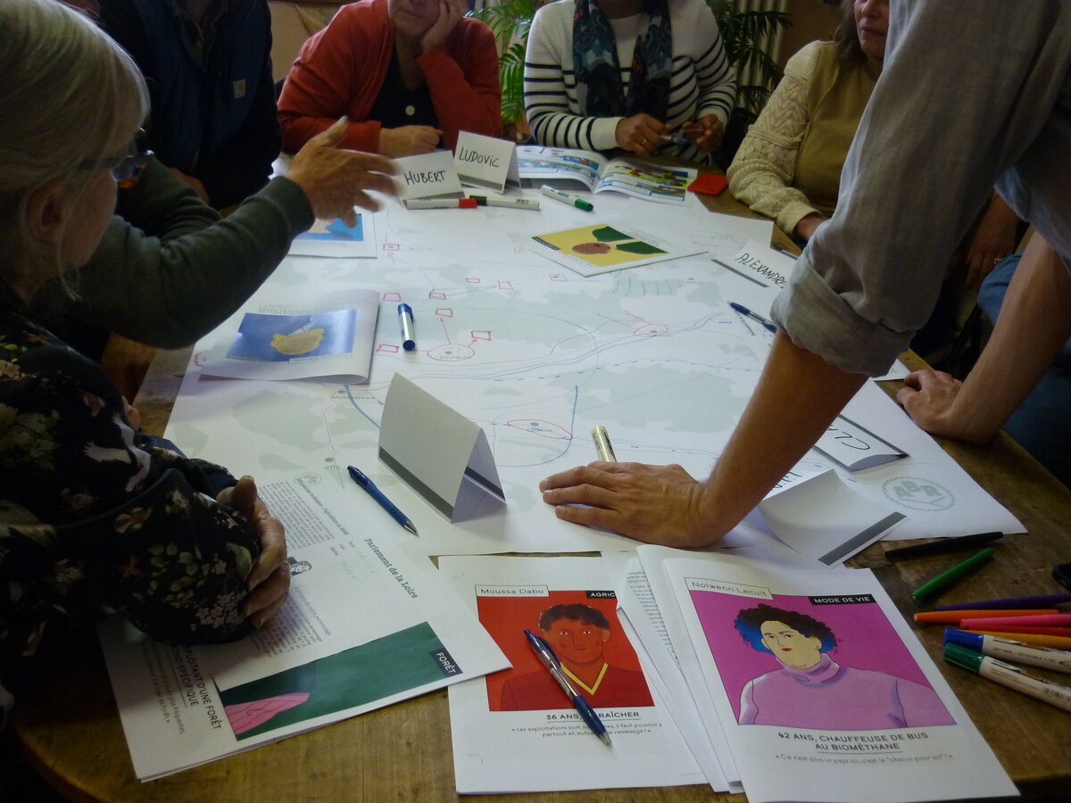Grâce à l’équipe du Parc dans son ensemble, y compris le conseil de développement, nous avons intégré au jeu les thématiques centrales du territoire et les informations clefs nécessaire à sa compréhension. Mais surtout, nous avons formé douze agents et partenaires du Parc à l’animation du dispositif. Ils et elles ont à leur disposition deux livrets avec des conseils d’animation, des scénarios pré-écrits, des guides d’écriture, et dix petites bandes dessinées représentant dix aspects du futur du territoire.